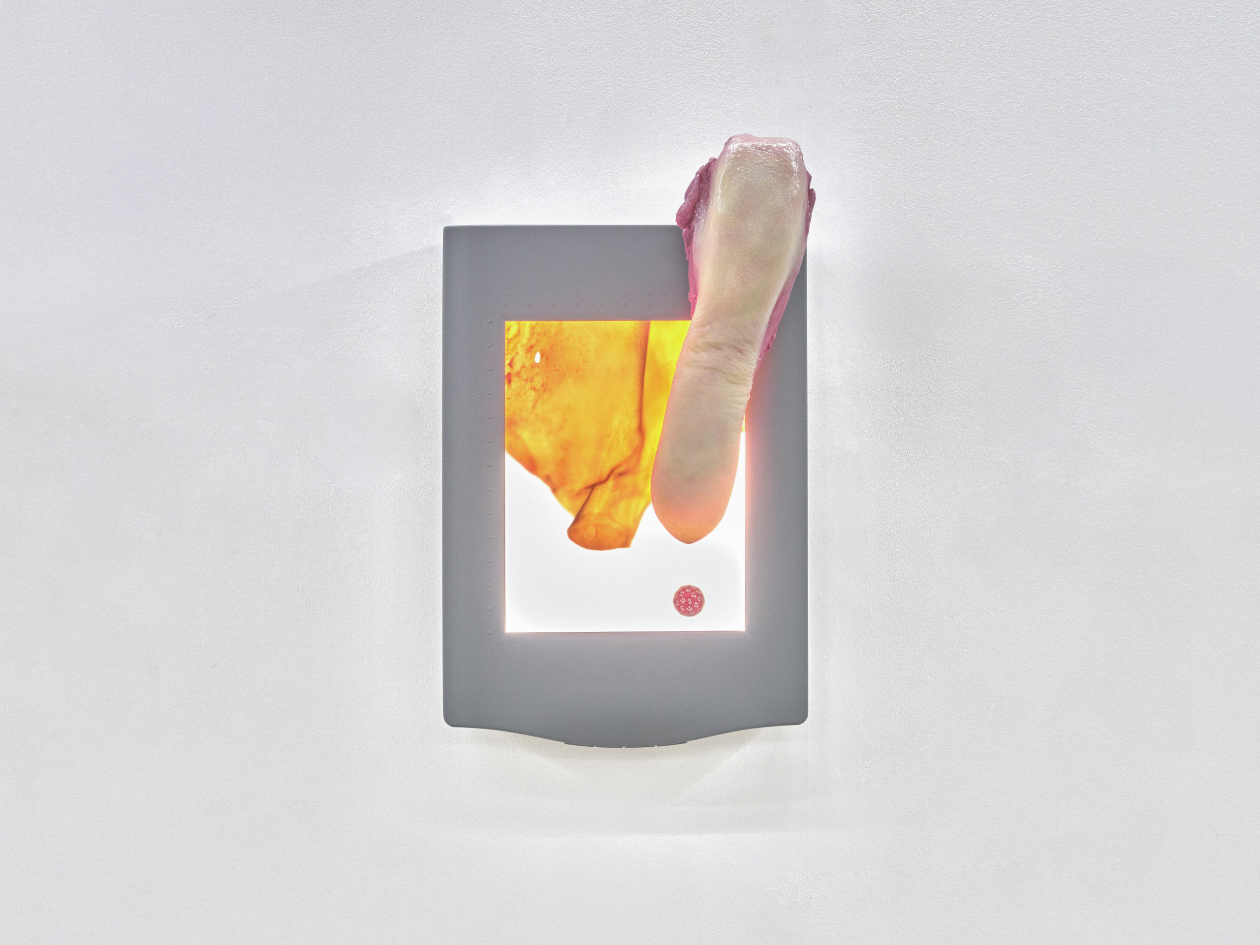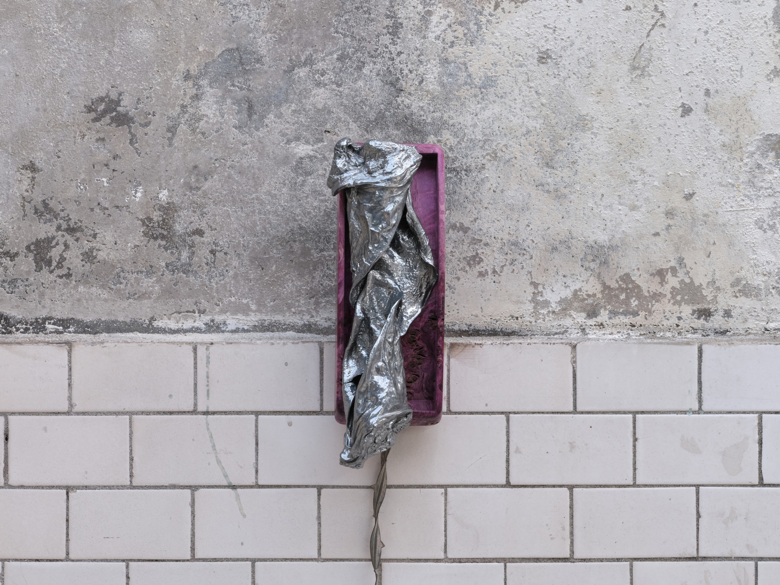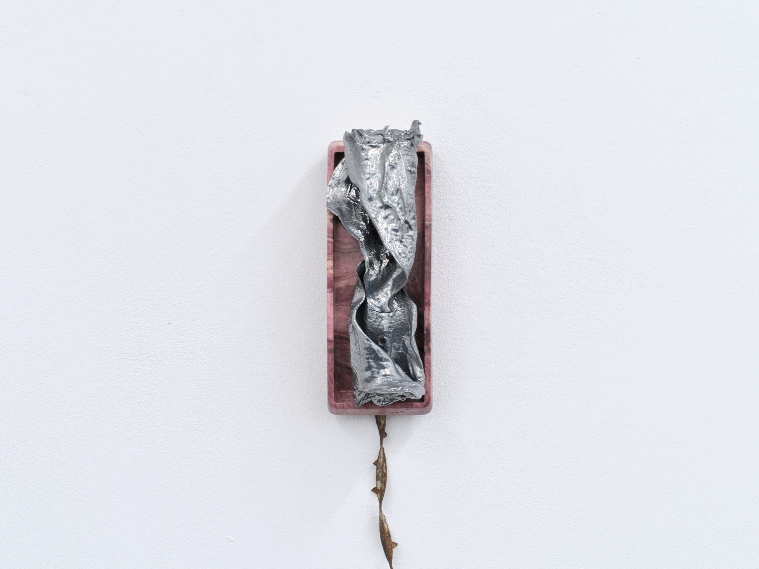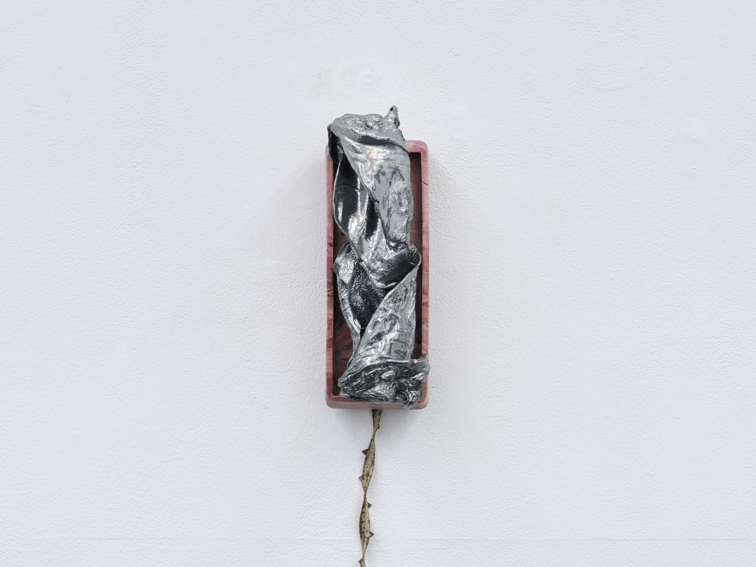 “Chain-of-thought” traces these parallel dynamics across four bodies of work that reanimate obsolescing hardware. Accompanying Model Collapse, there are Twisted Pairs, a series of sculptures that resemble wall-mounted telephones, made from cast cow ears nestled into each other with a cord of corroded, barbed wire. As America’s “Last Frontier” was colonized in the 19th century, private cattle fencing became transmissions lines for the spread of telecommunications through rudimentary local networks, a precursor to the way data centers now graft onto power-plants. Every now and then Twisted Pairs emit a whistle to one another, like lost signals from a severed grid.