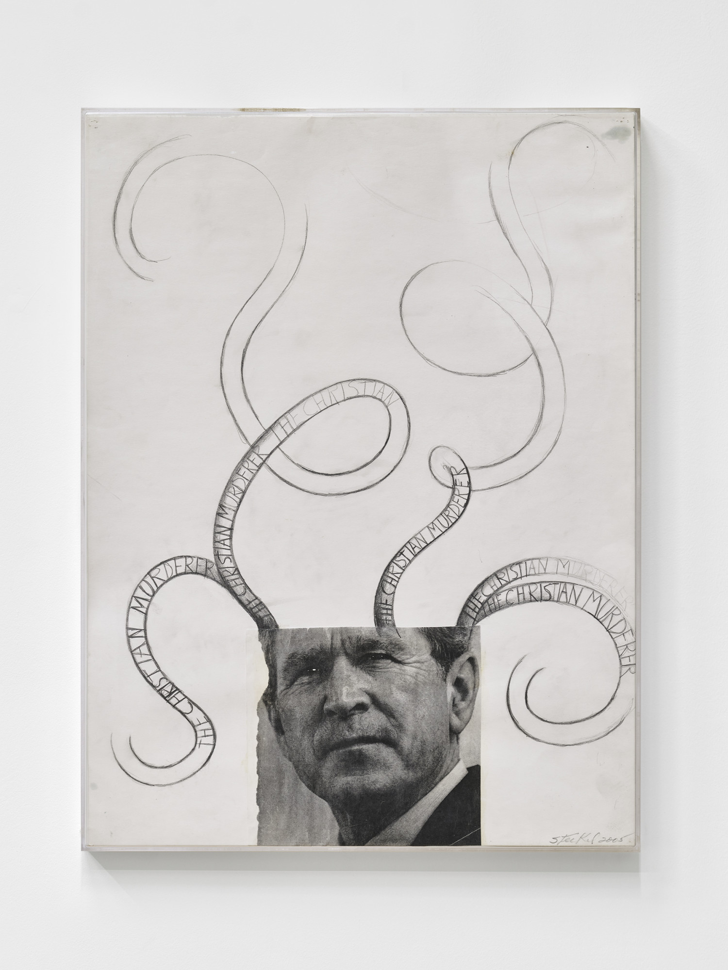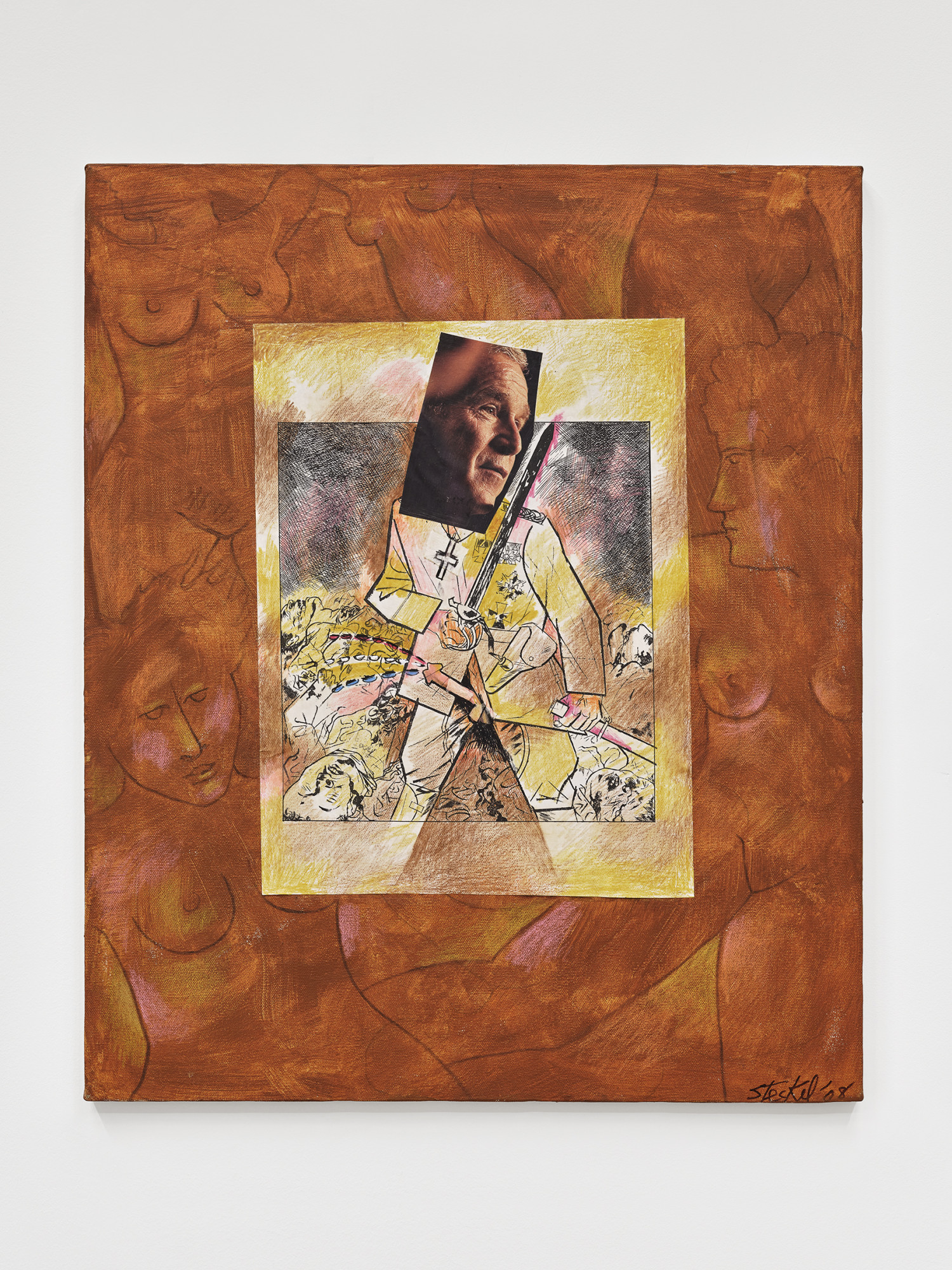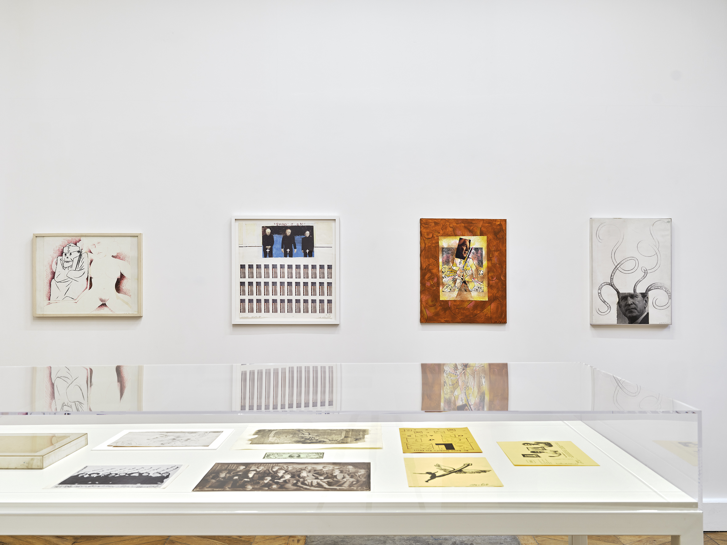 Drawn from Steckel’s archive and estate, the works presented in this exhibition span five decades from the 1960s to the 2000s. Throughout these works, phallic imagery is depicted as a cypher of systemic power, whose violent and dangerous ills are made subject to Steckel’s satirical view and critical dismantling; while the female body is positioned as an omnipotent, autonomous commander of its environment. Specific historical moments are given particular focus in this vein where visual cues to European fascism and Nazi Germany are treated with caustic sarcasm, an attitude that we might attribute to Steckel’s Jewish identity and her openly leftist politics; while the foreign policy of the second Bush administration and its involvement in the Iraq war appears as a conflation between American imperialism and phallocentrism.