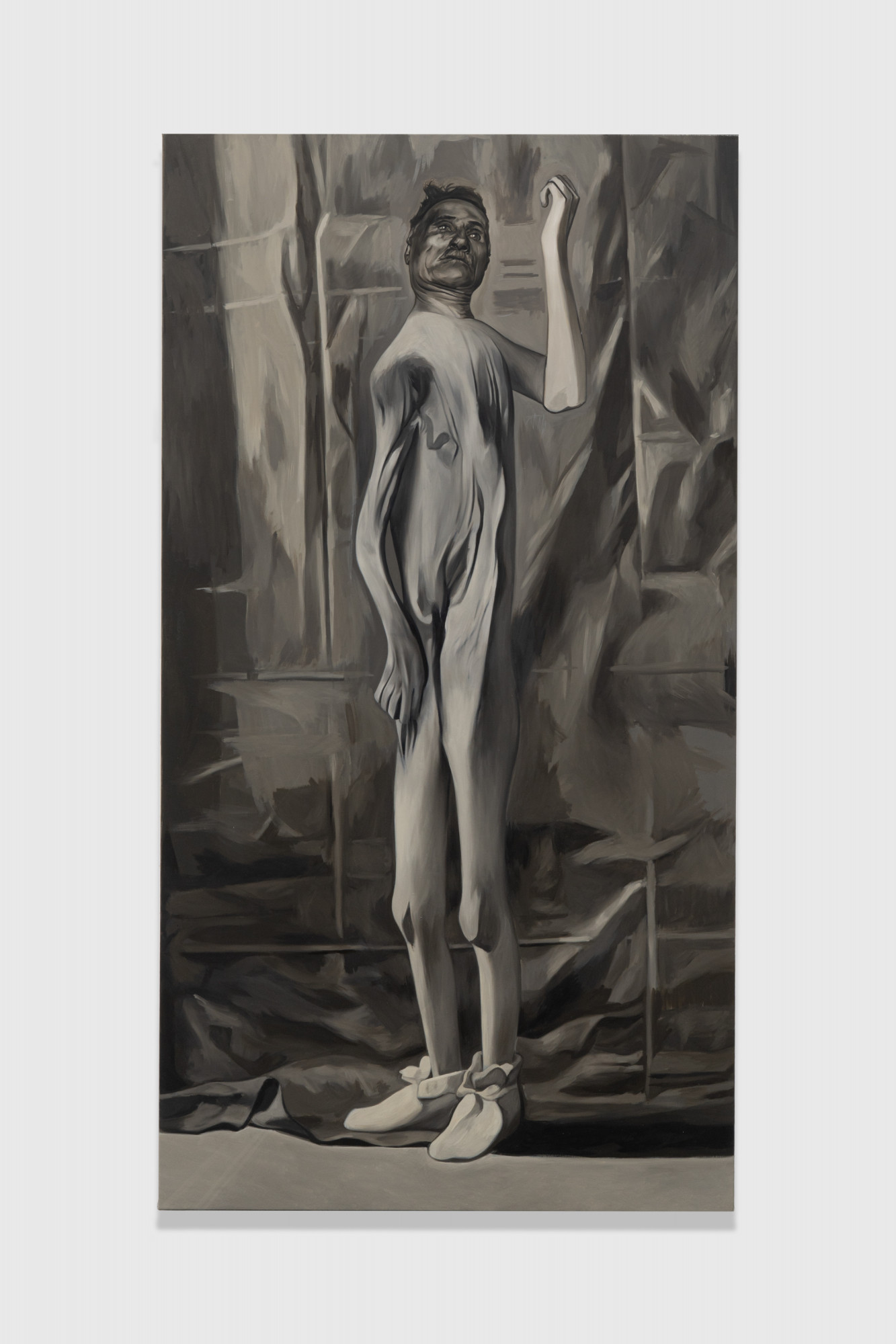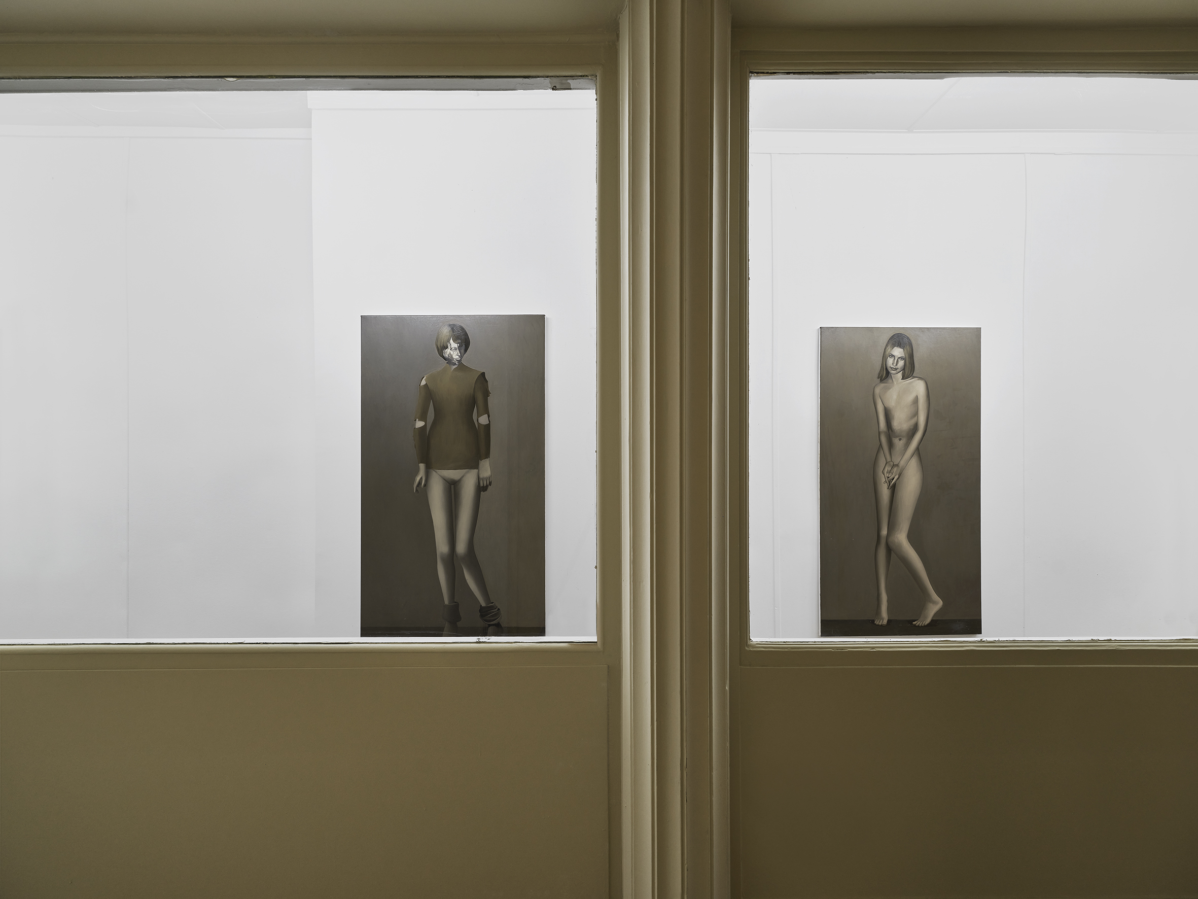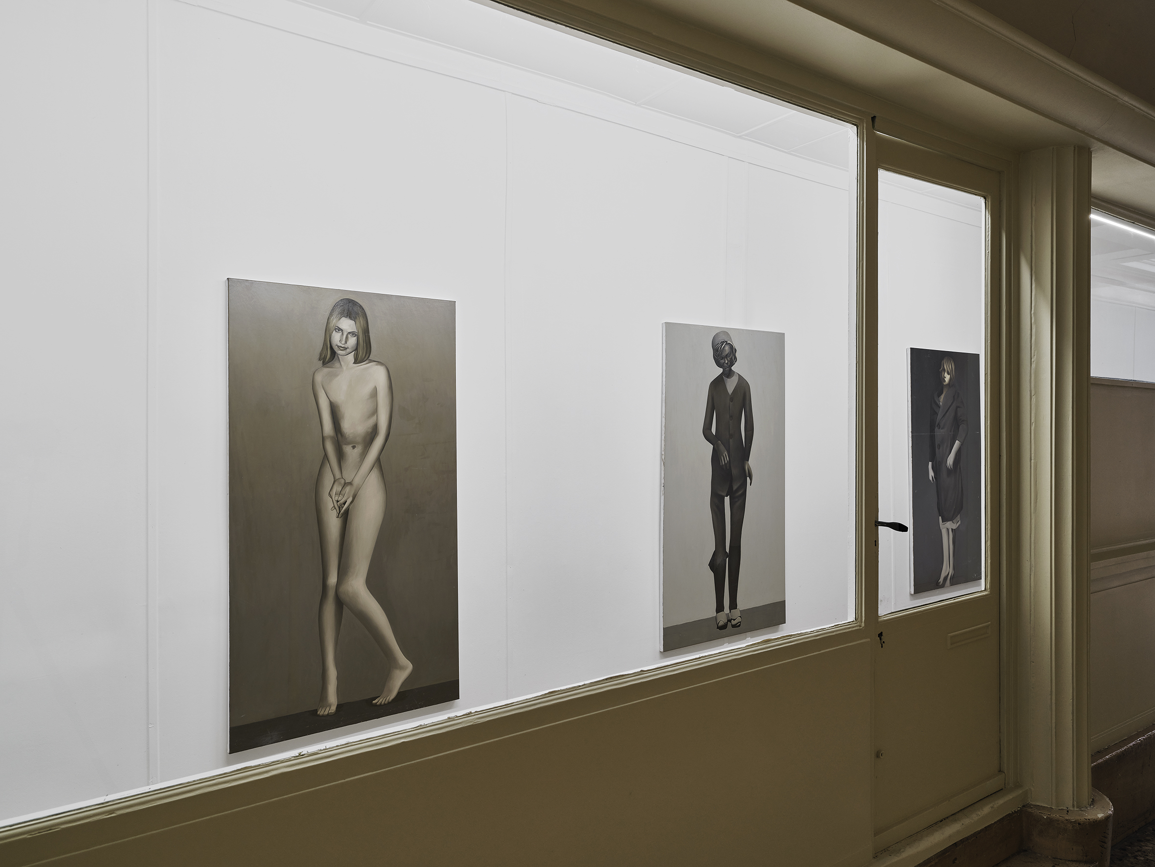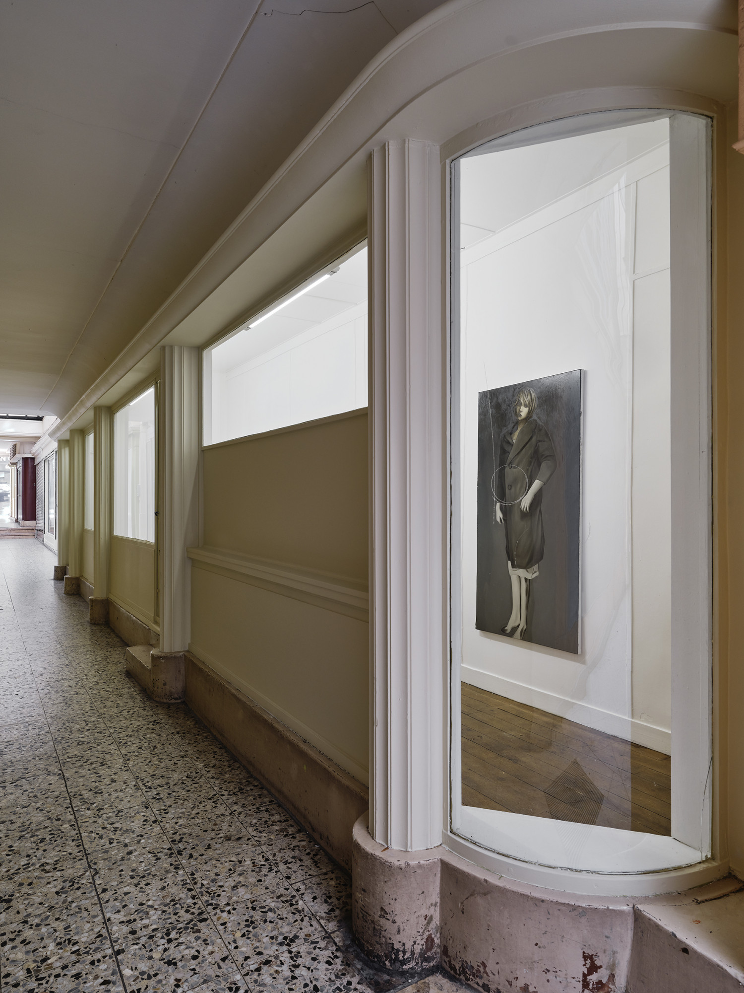 Eight rectangular canvases occupy the vitrines of Passage Sainte-Anne. Each holds a solitary, nearly life-sized figure composed of modular, jointed body parts. While in composition or tone the works may echo certain old master techniques, Marie’s process is intuitive, more of a personal interpretation than a faithful replication; an ongoing experiment. Marking a shift from previous methods, rather than glaze, the tableaux surfaces are the result of a layering of opaque paint. The interplay between the varnished surfaces, reminiscent of historical portraiture and gaunt subjects, who wouldn’t seem out of place in a video game’s apocalyptic landscape, create an atmosphere that is at once reverent and foreboding.