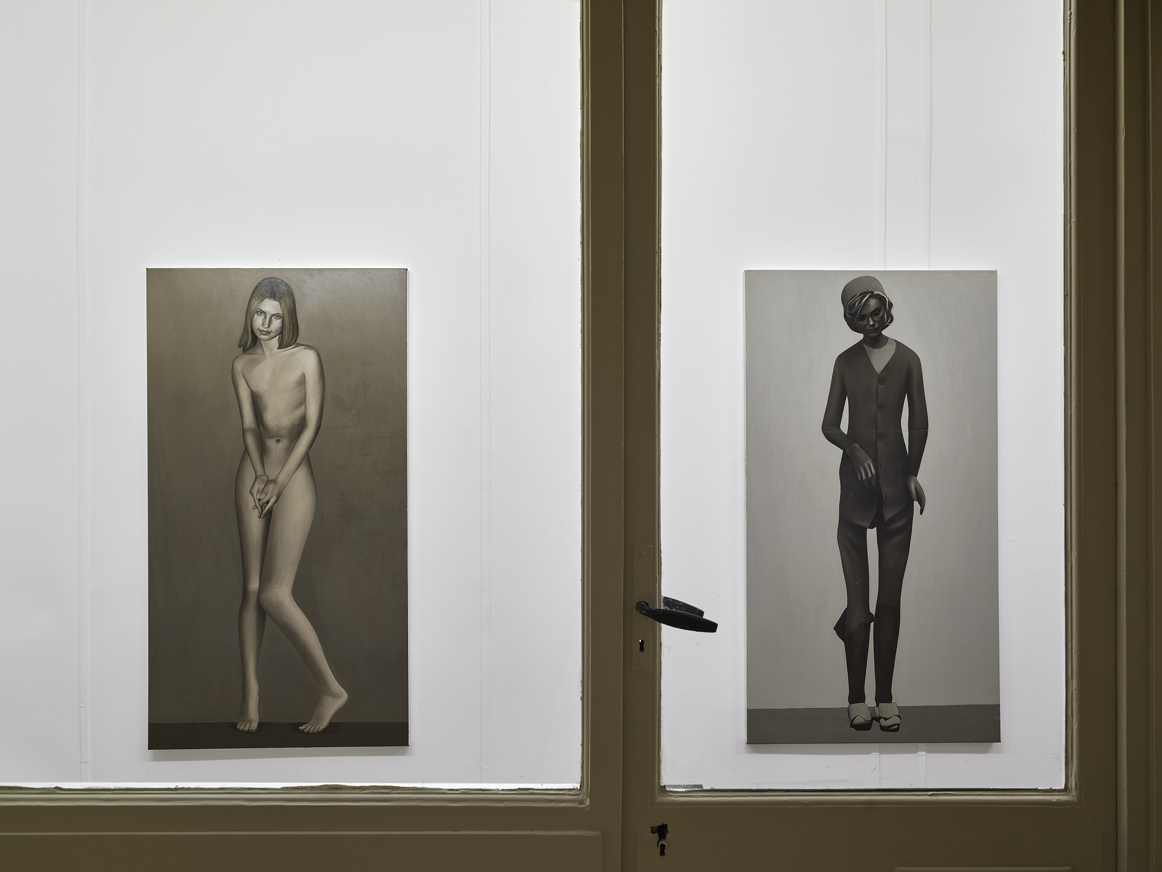 Despite their polished execution, the works resist narrative clarity. Faces are untelling, details withheld. The figures elude categorization: suspended between luxury and austerity, fashion and flesh, human and lifeless puppet. Rather than assign meaning, Marie encourages the figures autonomy, inviting the viewer to their own projected interpretation, be that of a stranger in the recent past, or friends of a future never realized. The vitrines frame the characters, not only as artworks but also as items for observation, between object, effigy and human — both intimate and untouchable.
