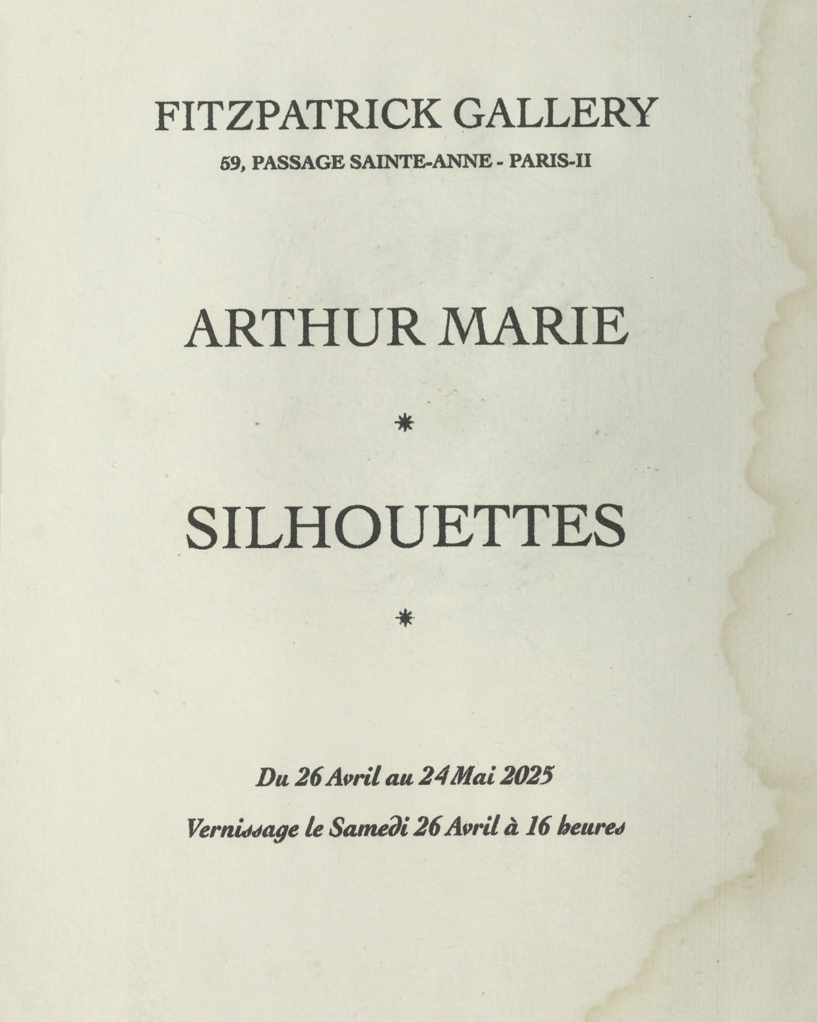 Fitzpatrick Gallery is proud to present Silhouettes Arthur Marie’s second exhibition with the gallery in Paris, opening Saturday April 26th at Passage Sainte-Anne.